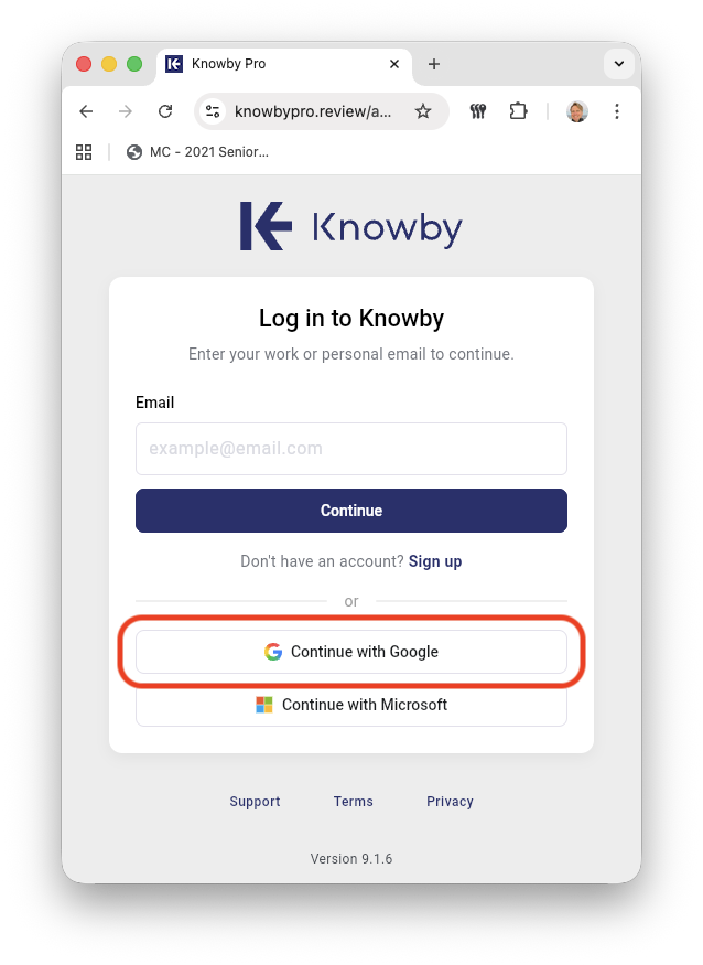 Start the Login: Navigate to the Knowby sign-in page and select "Sign in with Google".