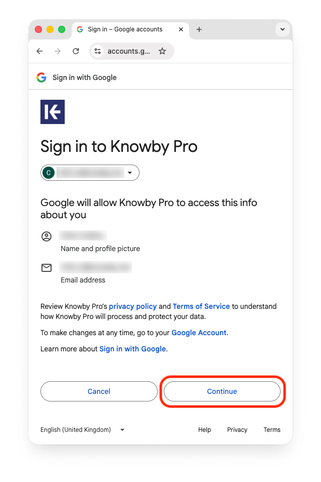 Review the Consent Screen: Because Knowby is a Verified Developer, you will see the Knowby logo and verified branding on the "Sign in with Google" prompt.