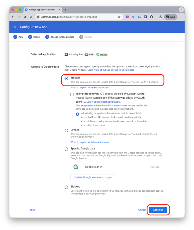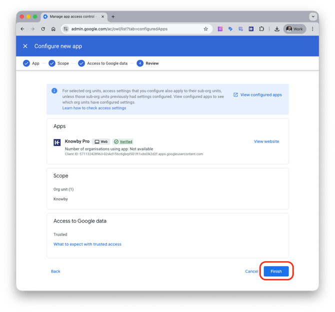 Knowby utilises Google's standard OAuth 2.0 protocol. By trusting the Client ID or using Domain-Wide Delegation, you maintain central control over application access while removing sign-in friction for your team.