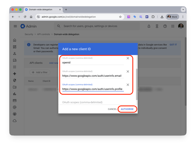 Authorise: Click Authorise. All users in your domain can now log in instantly without a consent prompt.